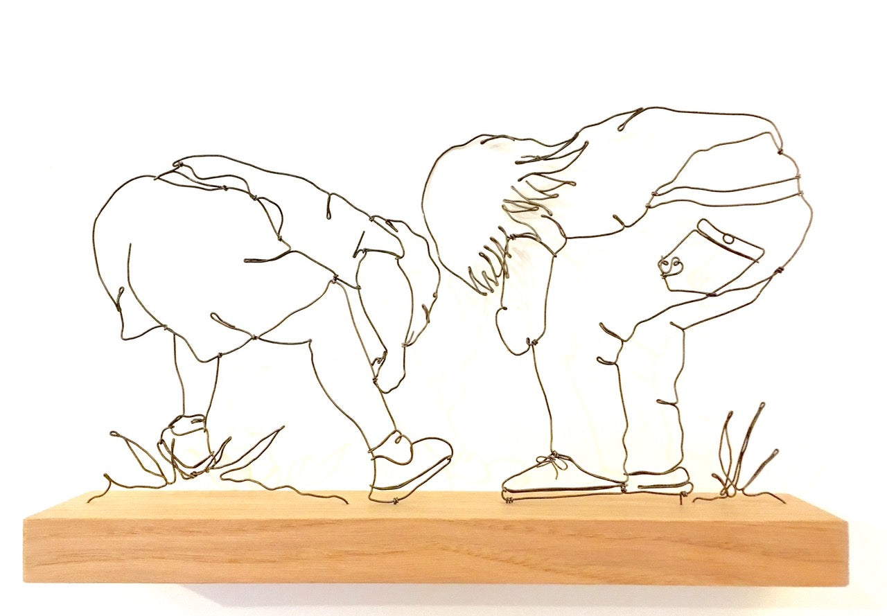 "Wire gives me the freedom to draw in the air: it is intriguing to see the line hold its shape. I love using the minimal amount of 'lines'to suggest the highlights of each creation. I work for hours with my hands, pliers and cutters alone to create each work of art: valuing the purity of this process. My wiry initials are twisted into each piece: see if you can spot them."