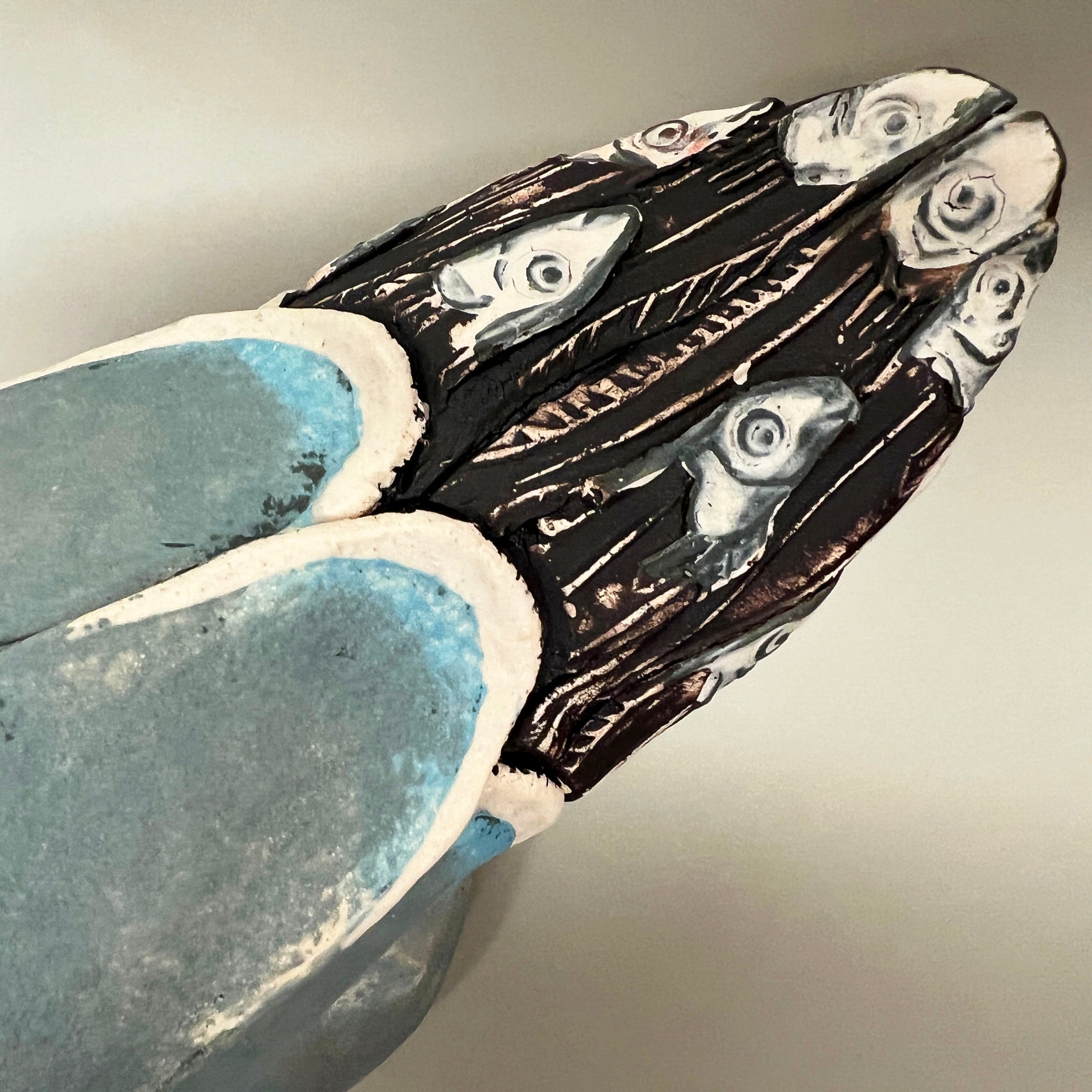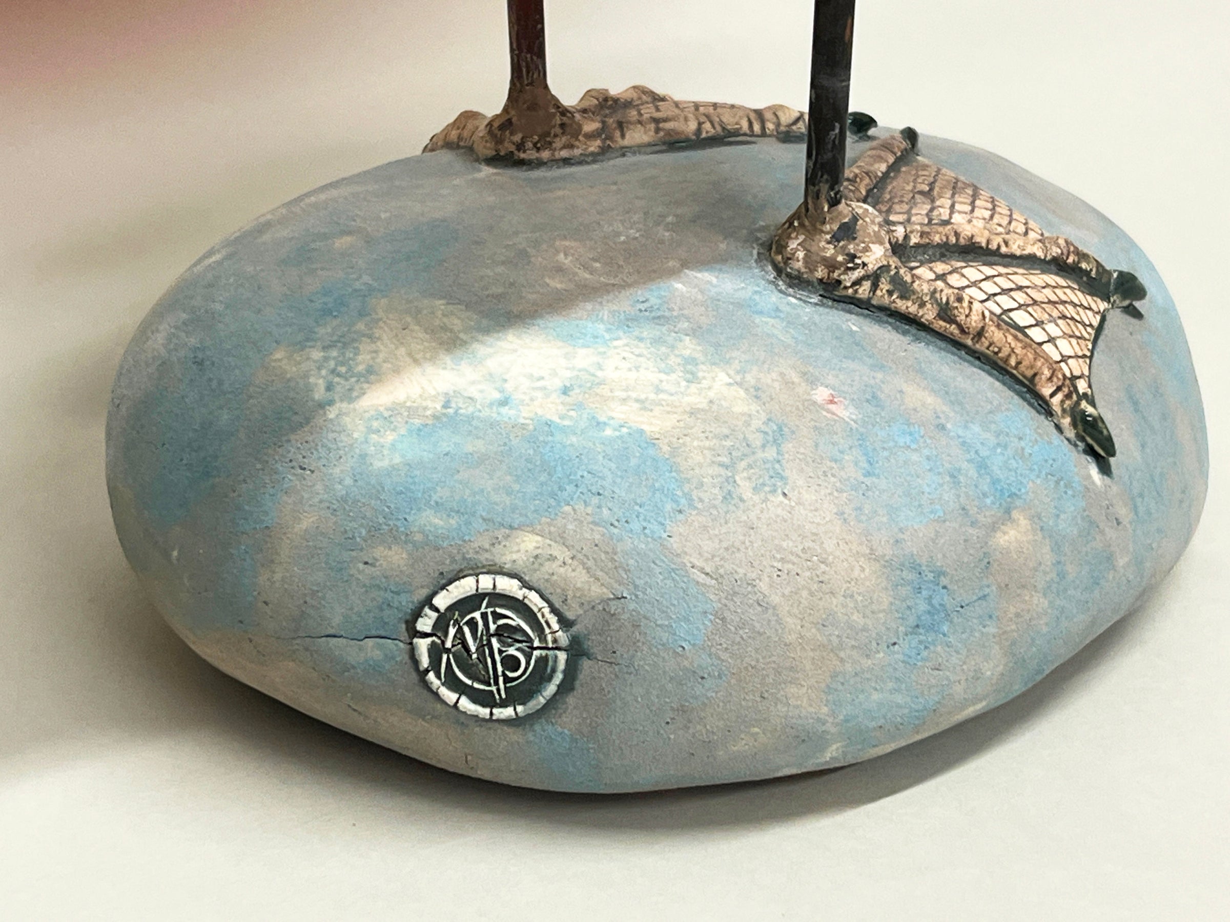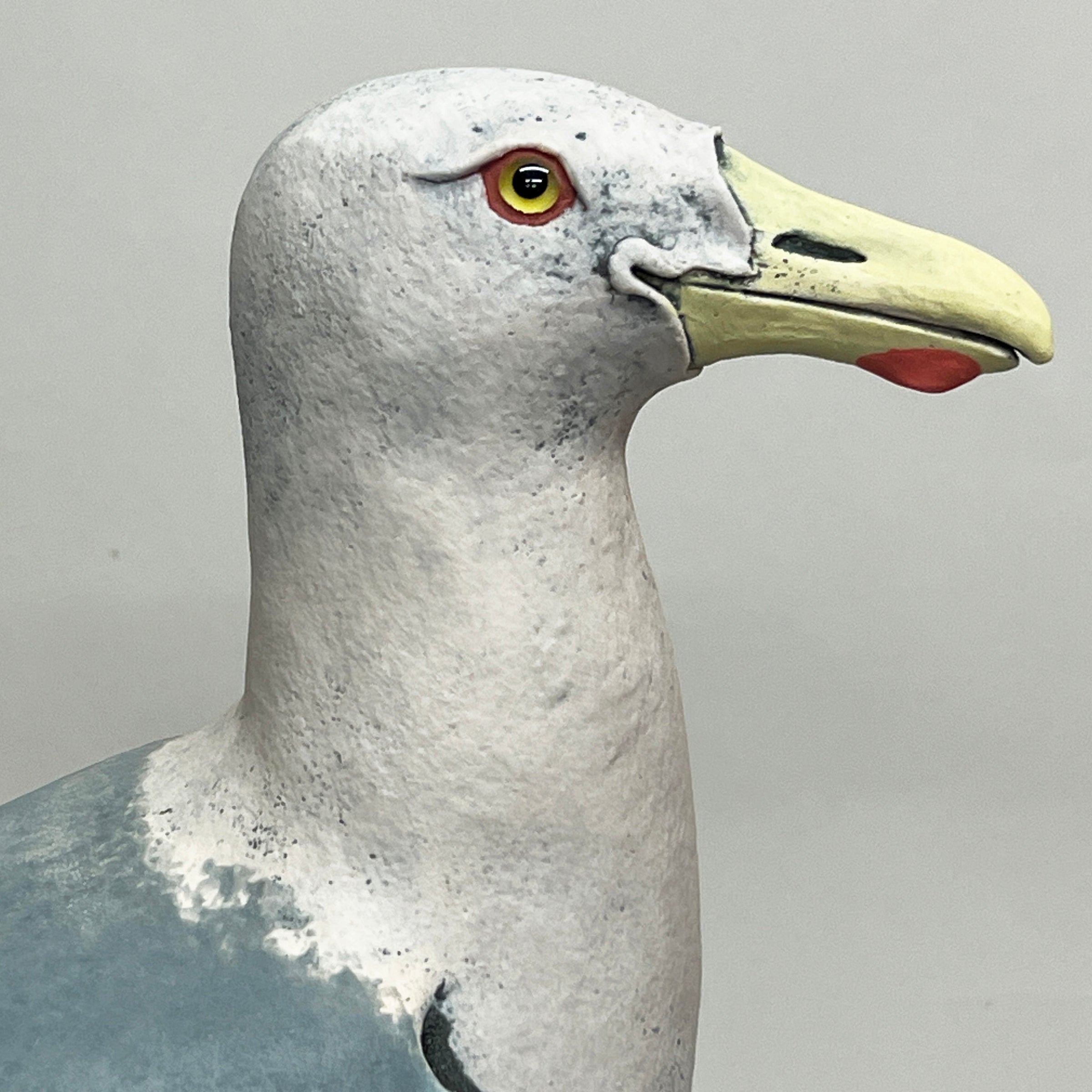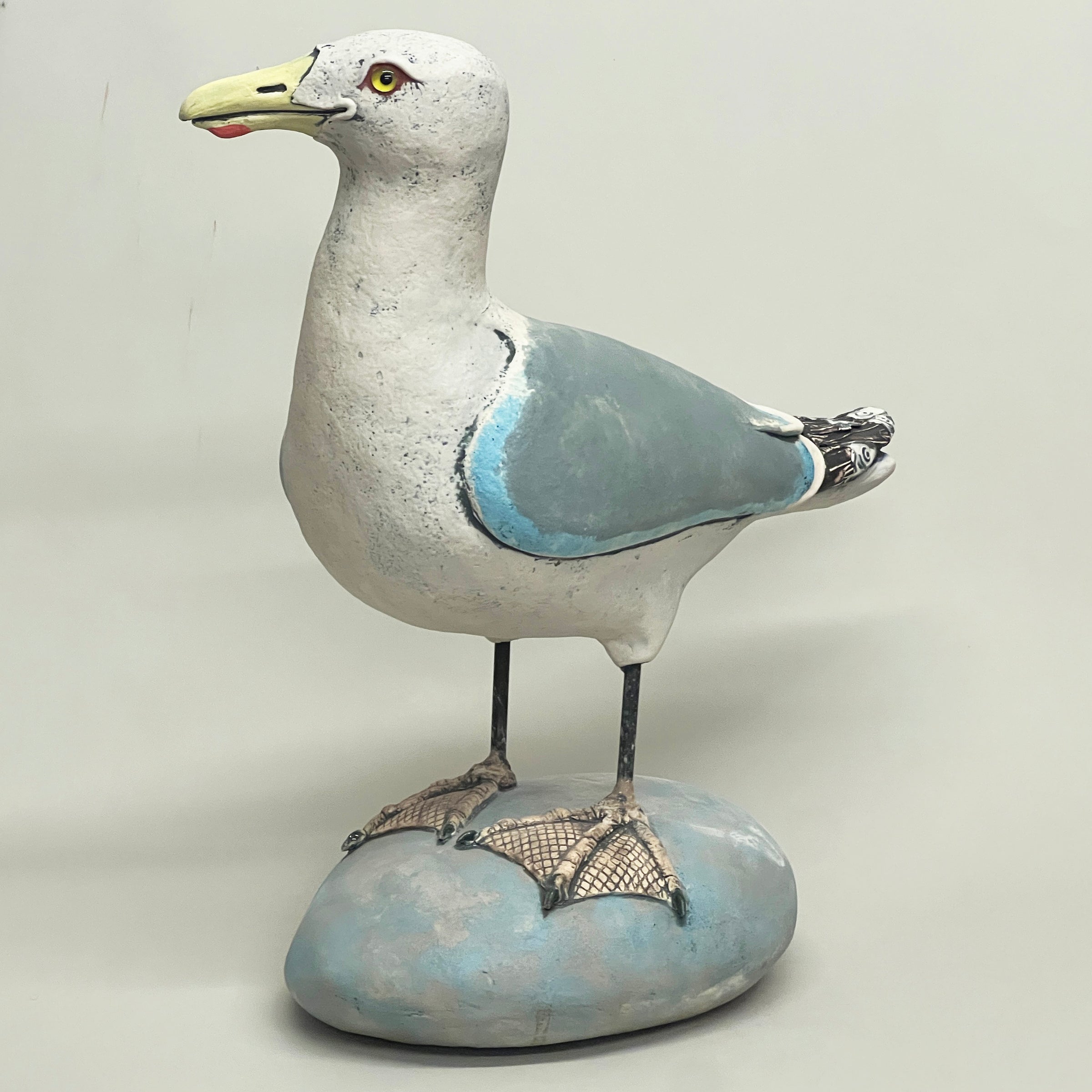 Handmade earthenware seagull. All the gulls are hand-modelled, and vary in body posture, glaze details and decorative finishing.