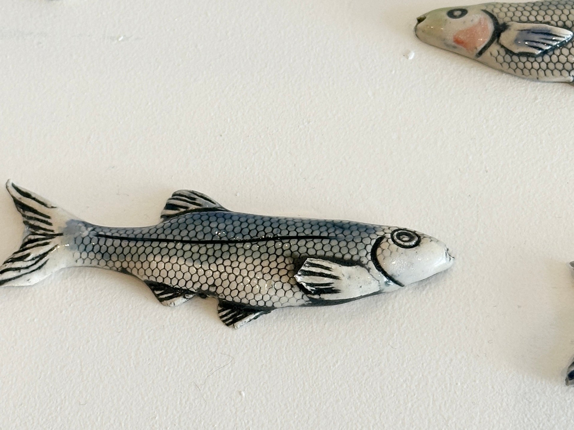 These beautiful hand-made ceramic herring are typical of Marion Brandis’ celebrated style.