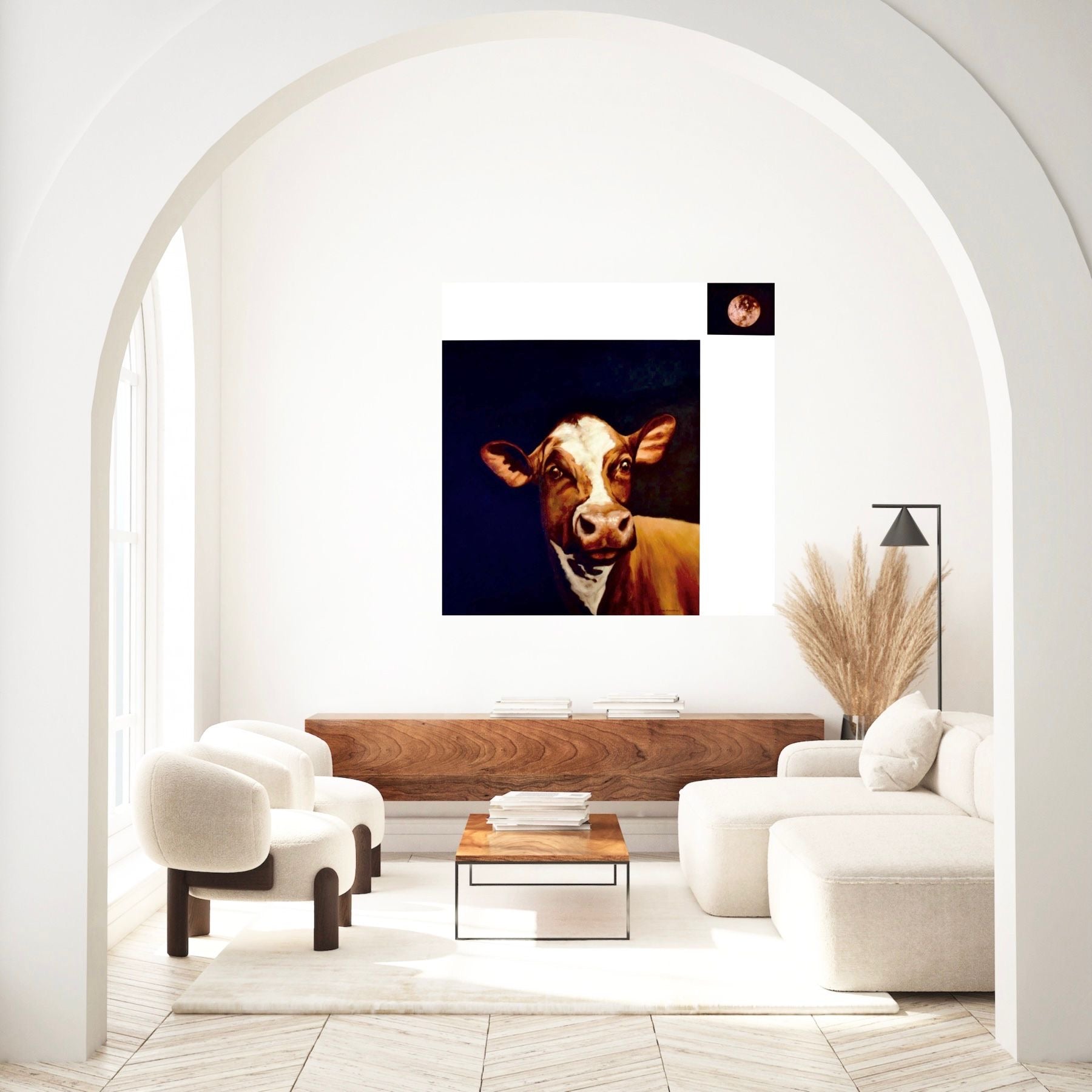 This stunning oil on canvas is 100cm x 100cm it comes with its own painting of the moon.