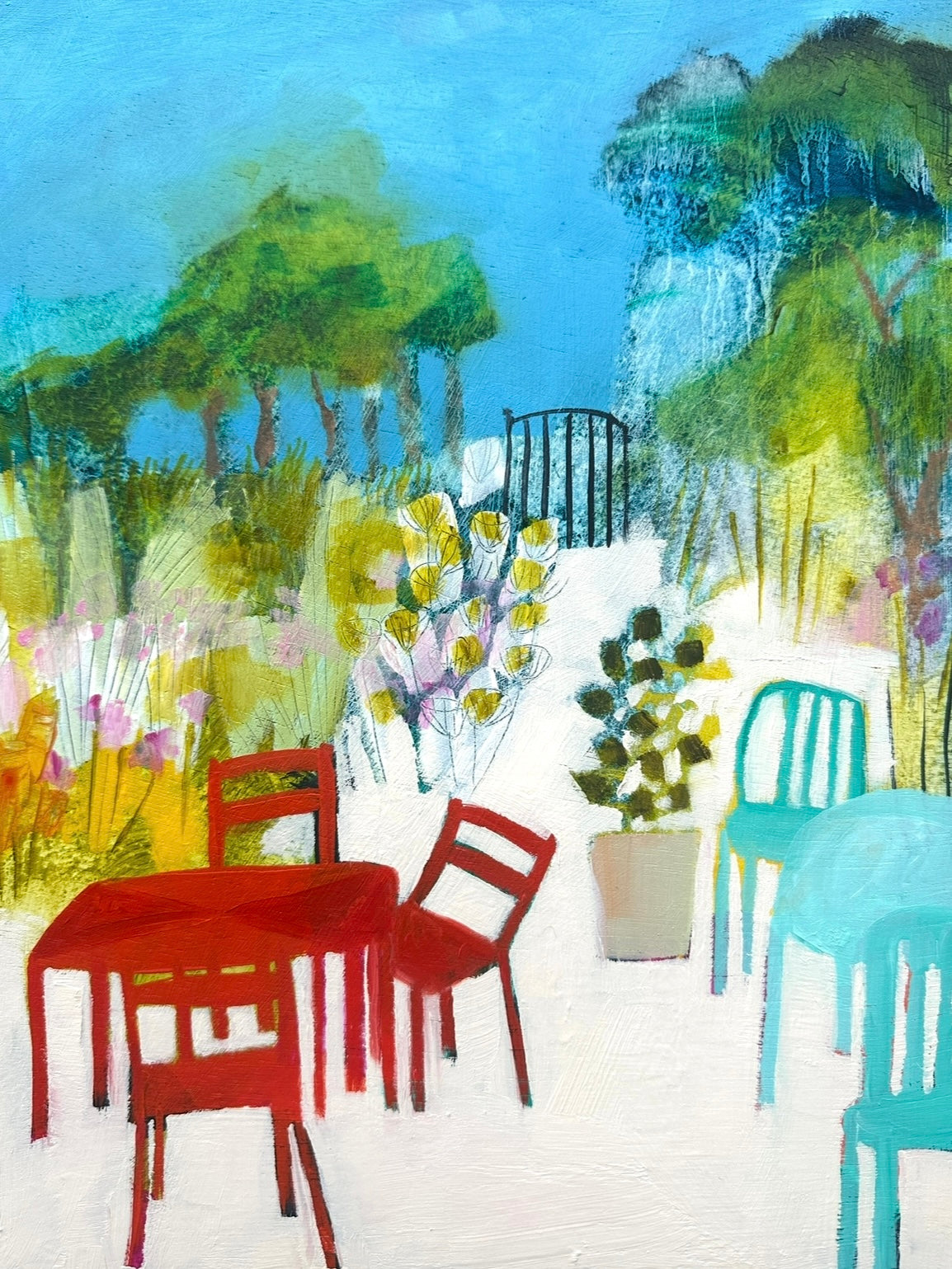 Kathryn enjoys leaving just enough room in her paintings for our imagination to create its own stories. Kathryn has always been known for her colourful palette and varied mark-making.