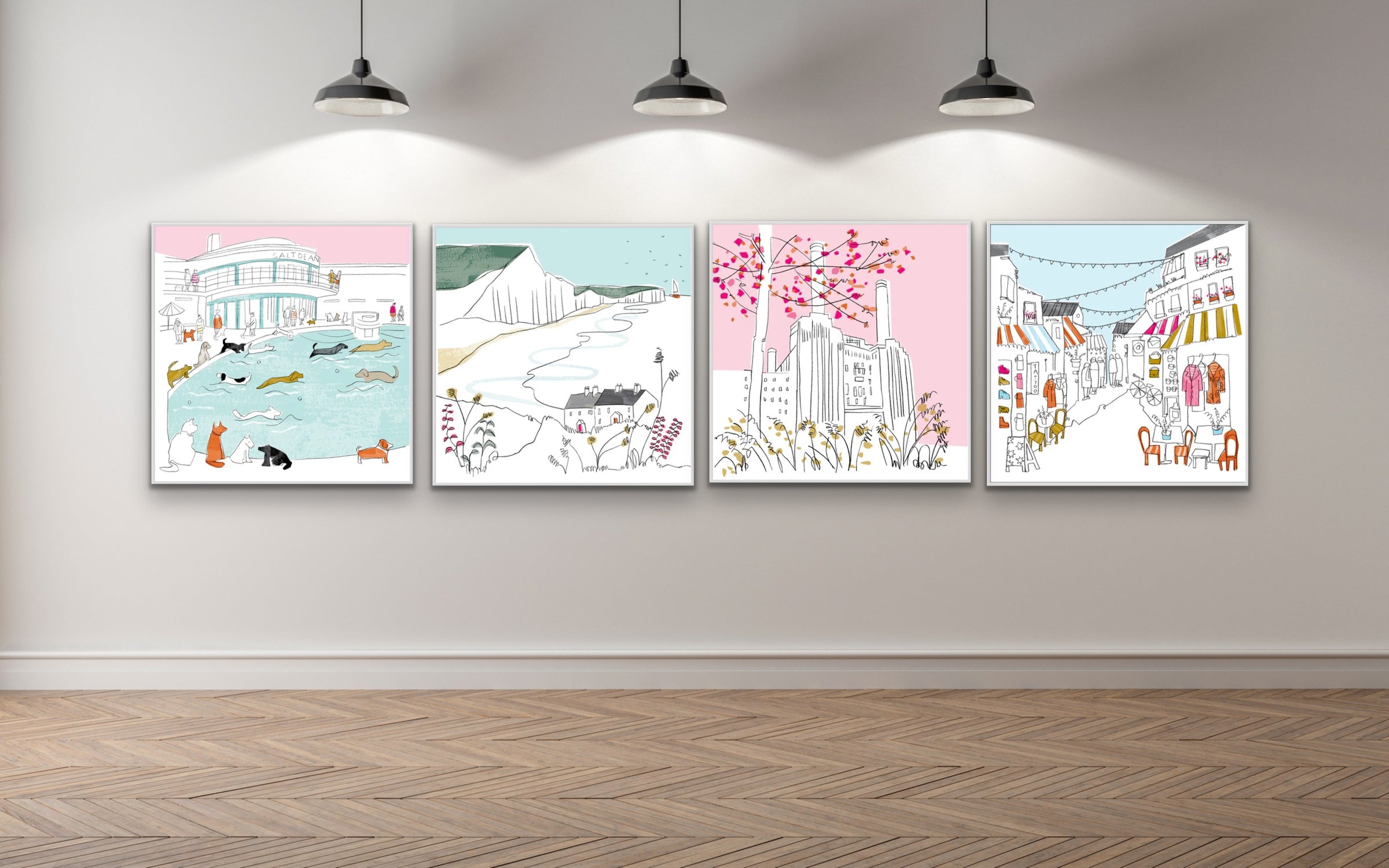Katty McMurray studied at the Chelsea School of Art (1988-91) exhibiting widely throughout throughout the UK and the London art fairs - accumulating an extensive list of collectors. Her work draws on her extensive travels, with a more recent focus on the British coast. Clean lines, solid brightly coloured shapes and a meticulously balanced palette are a hallmark of Katty’s serene and restorative oil on linens and line drawings.