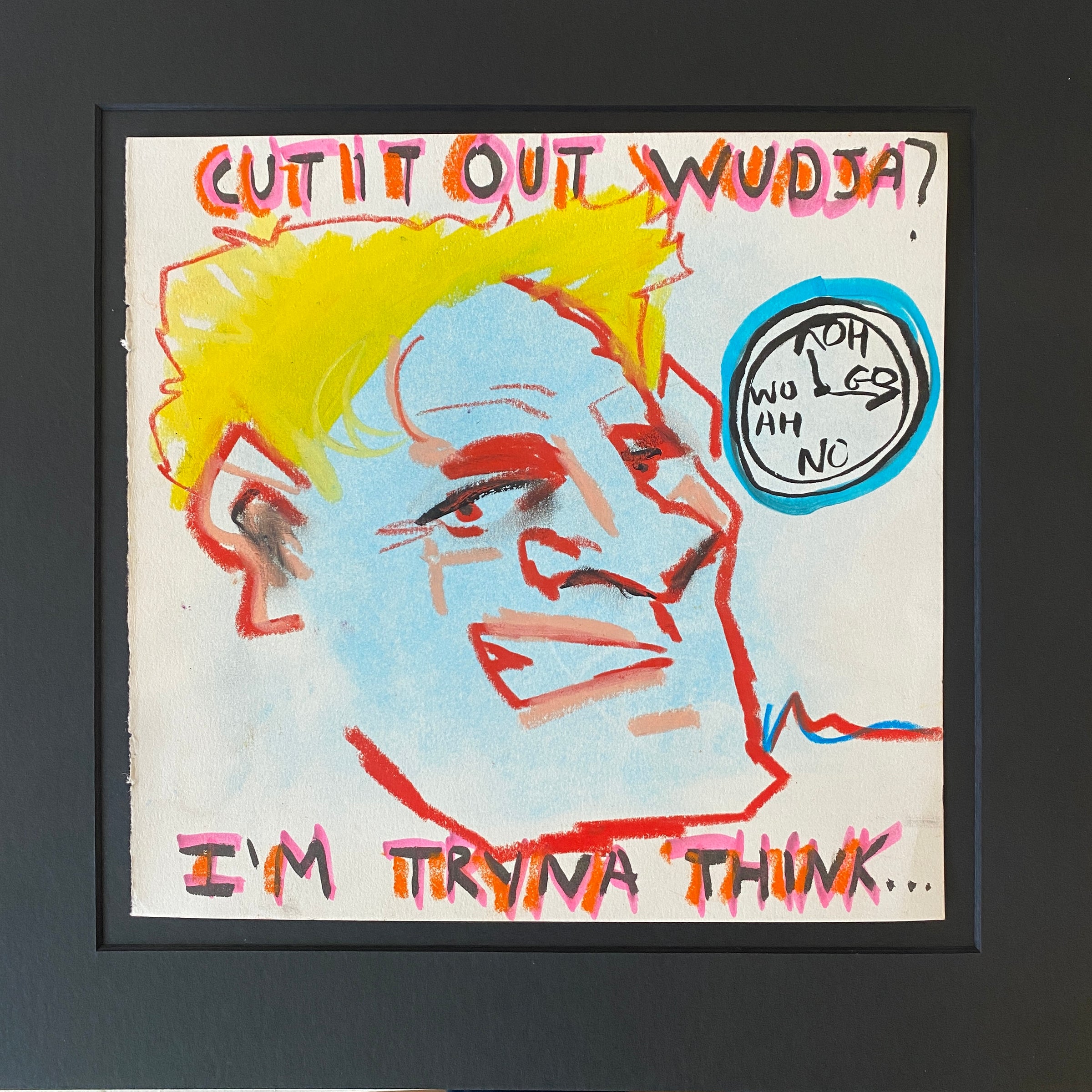 An UNFRAMED, signed, original sketchbook page directly from Dylan Moran’s well-travelled sketchbooks. Each artwork is in mixed media on paper. Some pages show signs of wear and creases. Please zoom in to the photos .