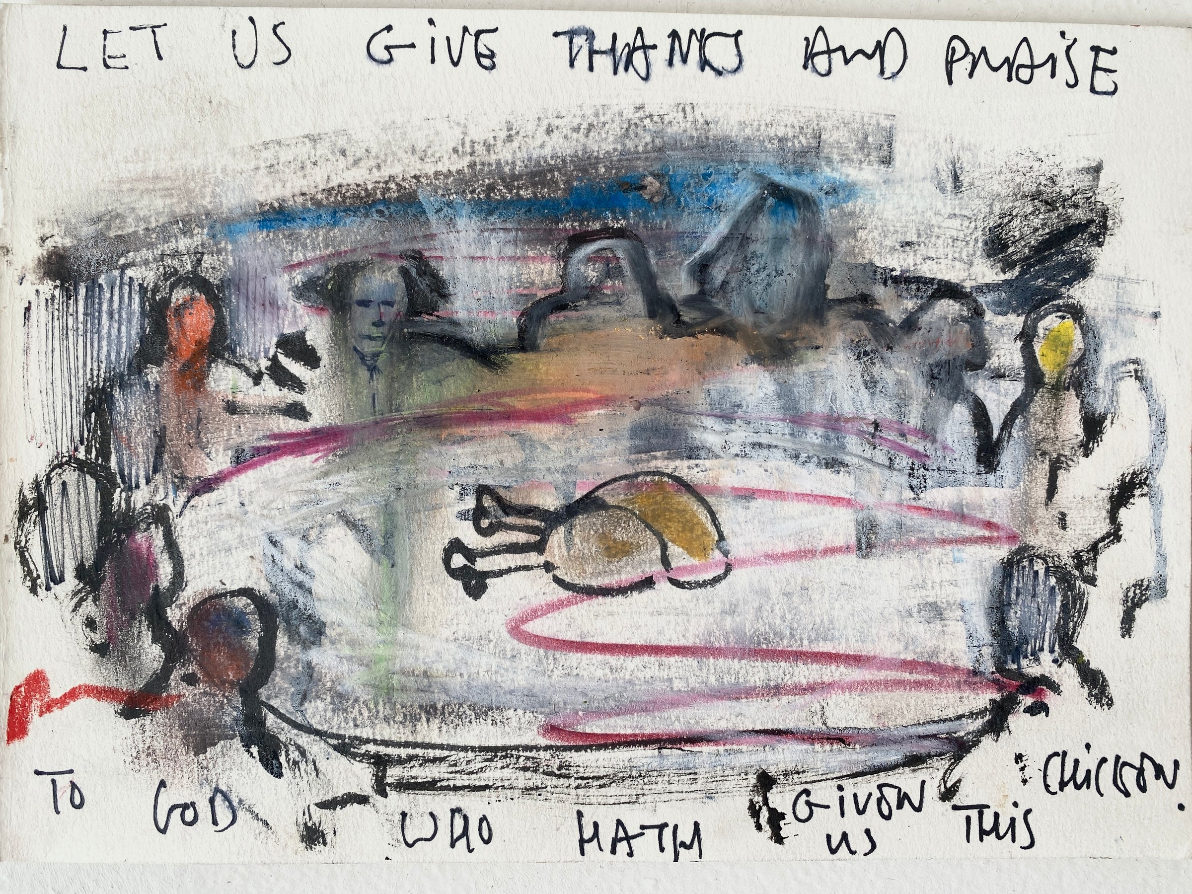 An UNFRAMED, signed, original sketchbook page directly from Dylan Moran’s well-travelled sketchbooks. Each artwork is in mixed media on paper. Some pages show signs of wear and creases. Please zoom in to the photos .