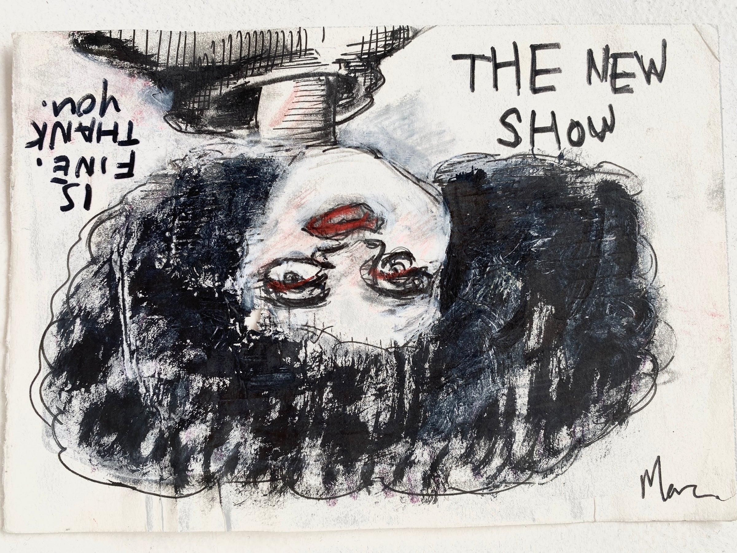 An UNFRAMED, signed, original sketchbook page directly from Dylan Moran’s well-travelled sketchbooks. Each artwork is in mixed media on paper. Some pages show signs of wear and creases. Please zoom in to the photos .
