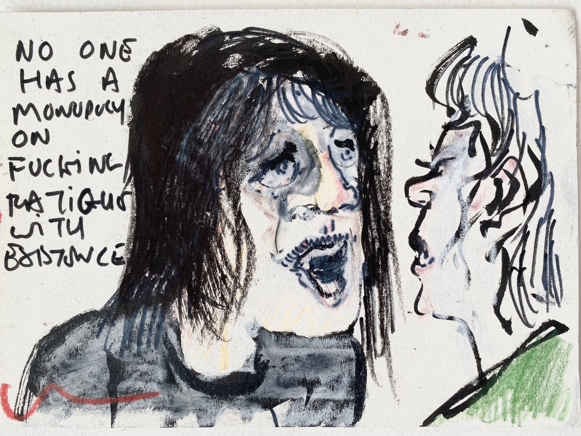 An UNFRAMED, signed, original sketchbook page directly from Dylan Moran’s well-travelled sketchbooks. Each artwork is in mixed media on paper. Some pages show signs of wear and creases. Please zoom in to the photos .