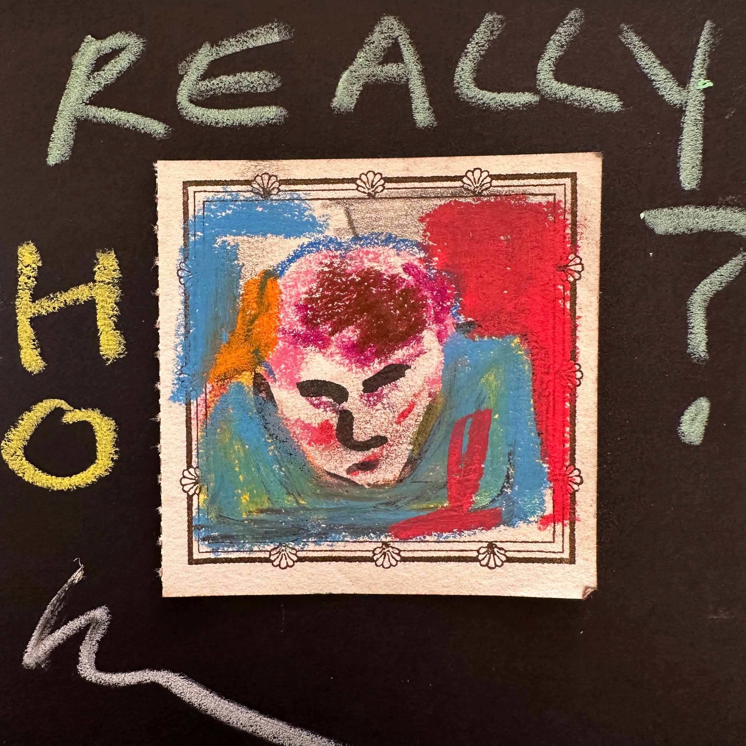 Original work in mixed media on letterpress label.