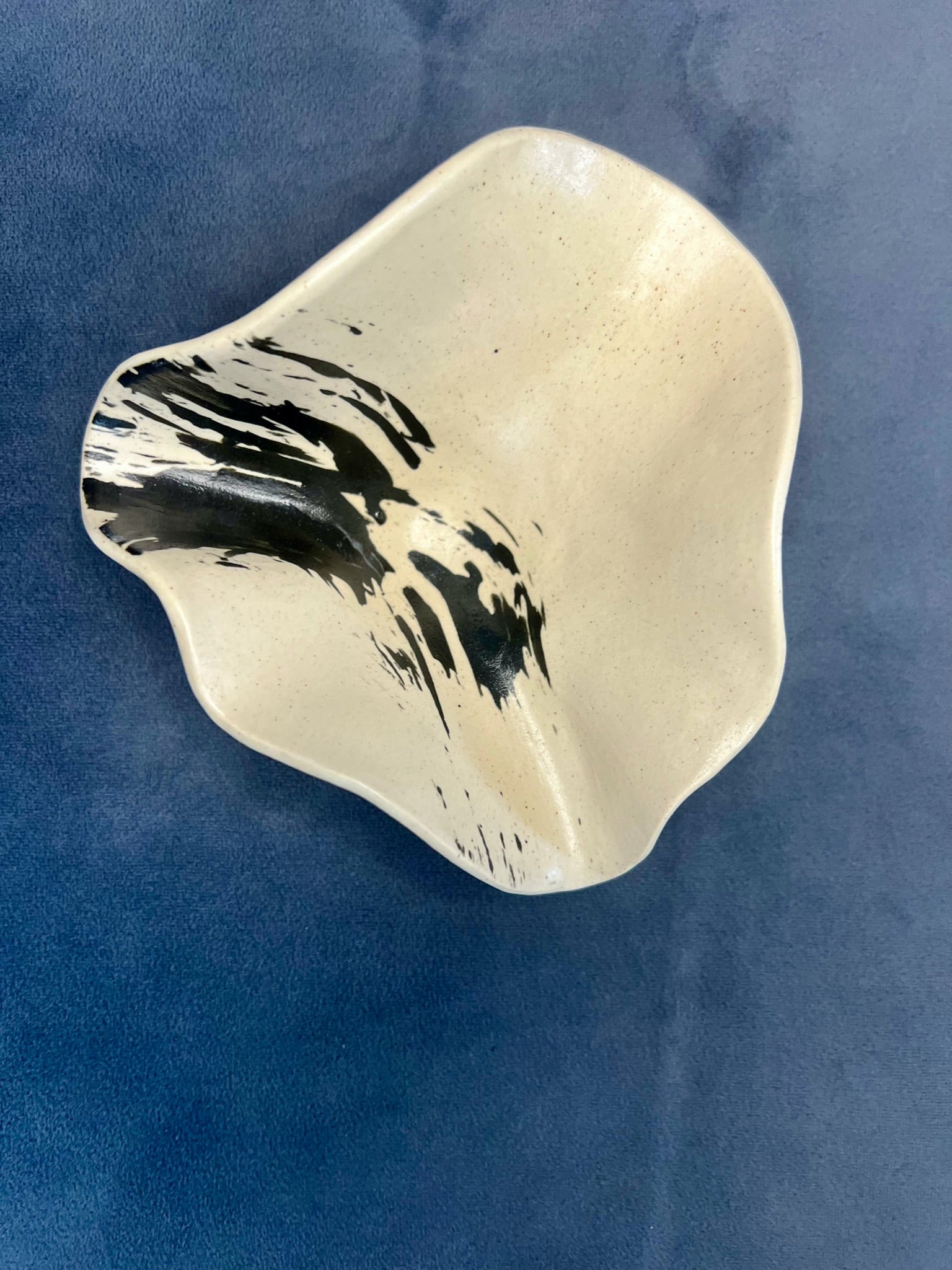 Small white stoneware kelp-form bowl, black engobe, almond milk 14cm x 14cm x H7cm |